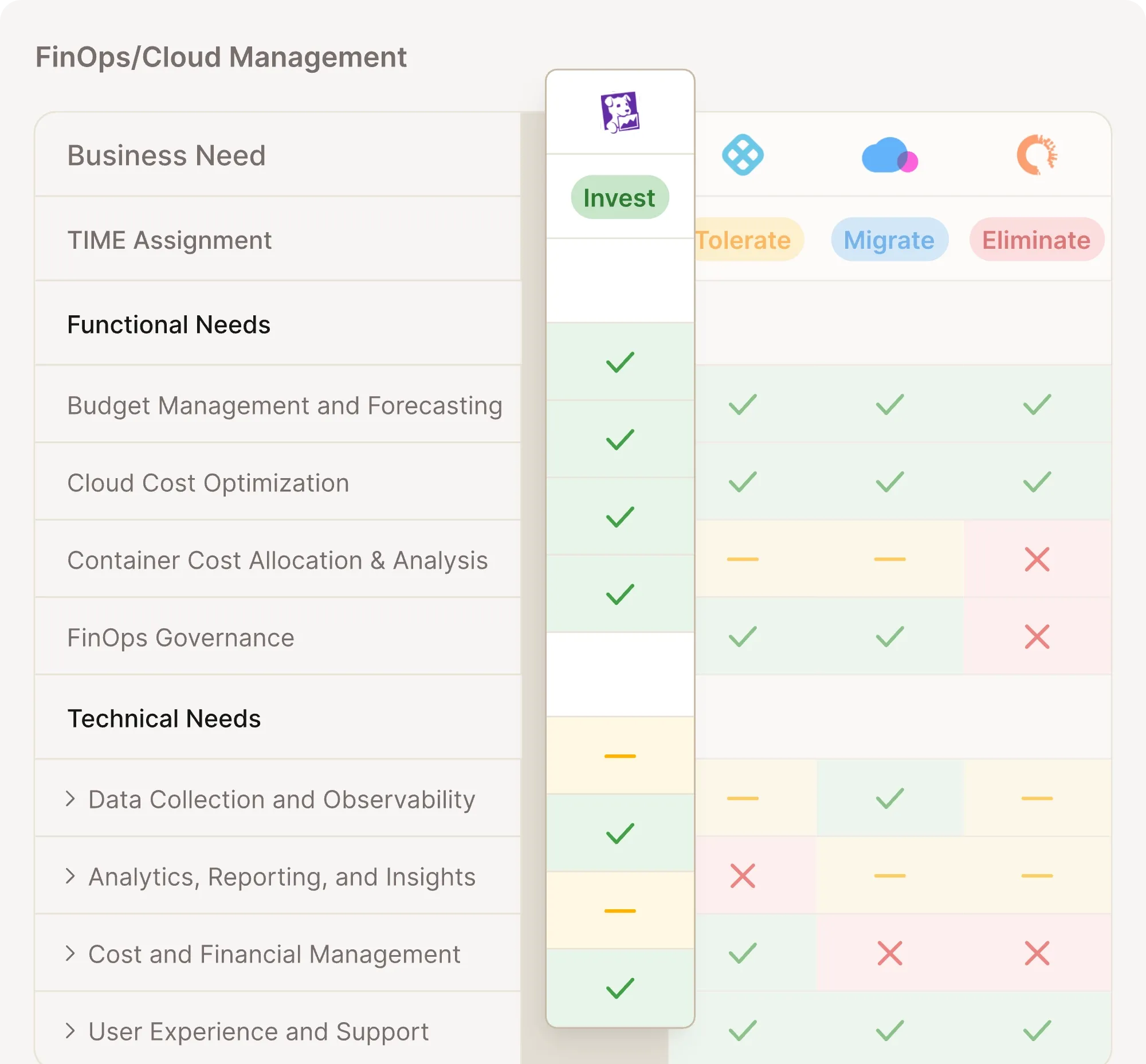 Portfolio frameworks, such as the Gartner TIME model, exist to address this. Placing each tool into Tolerate, Invest, Migrate, or Eliminate based on defined criteria is the right approach. The issue is that substantial criticism has emerged around these frameworks being hard to implement in practice. (ScienceDirect, Purchasing Category Management: Portfolio Management, Sourcing Levers and Strategy Formulation, October 2025) The theory is well understood. Consistent, evidence-backed placement across hundreds of applications is where it breaks down.